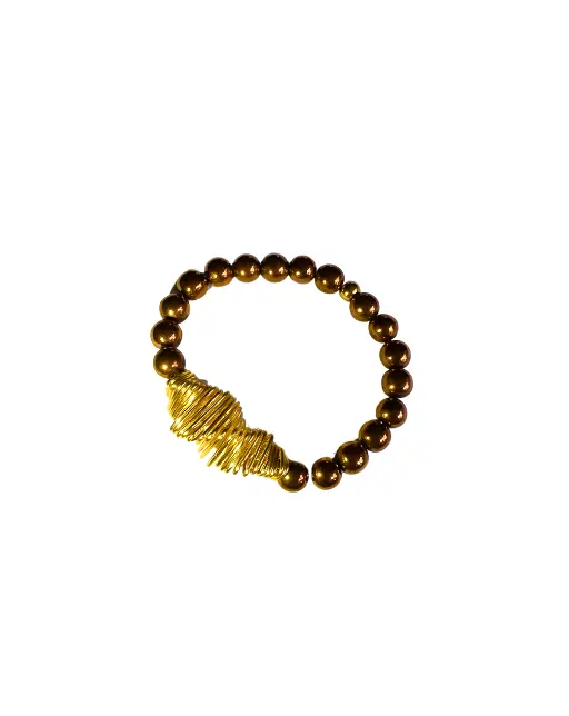 - Material: hematista color bronce y dije en alambre con baño de oro