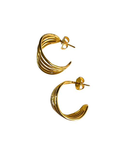 Aretes conformados por cinco argollas en una.  Son elegantes, versátiles, atemporales y muy llamativos.  Ideales para toda ocasión.