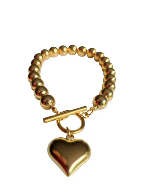 Pulsera con dije de corazón y cierre tipo pescador. El dije cuelga, agregando movimiento y color al día a día.